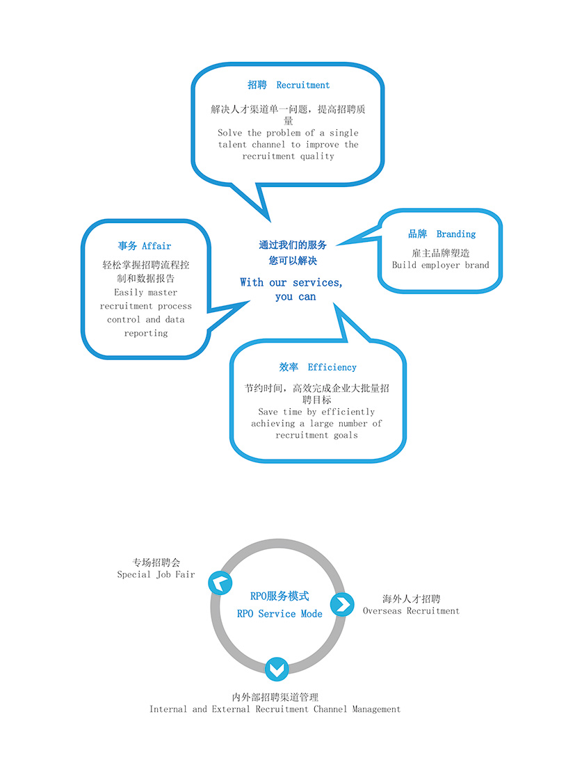 溝通offer,候選人入職管理等??傊?,RPO服務(wù)為客戶(hù)提供量身定制的招聘解決方案。
